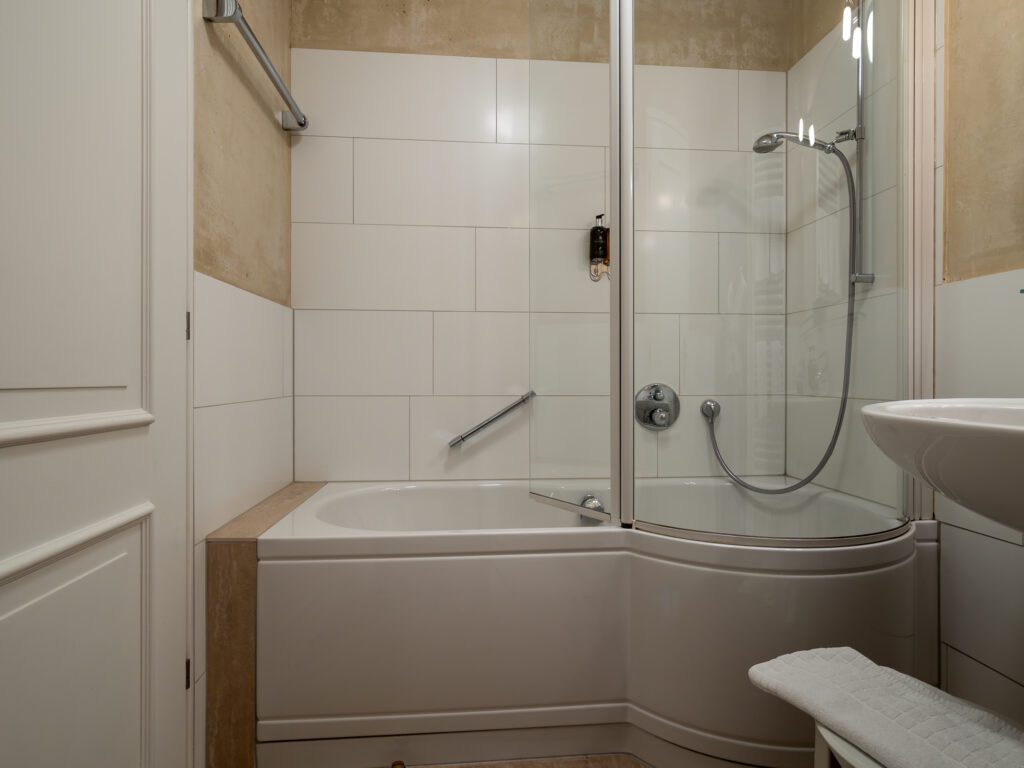 Bademantel, Badeslipper, Kosmetikspiegel, Föhn & Pflegeprodukte von Molton Brown.